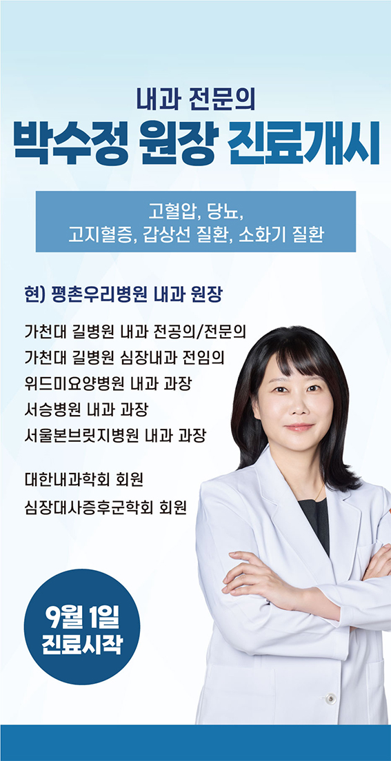 [병원소식] 내과검진센터 박수정 원장 9월 진료개시 2025-08-29 hit.434 |