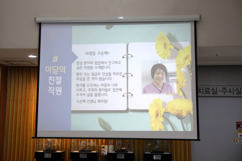 그리고 고객의 소리함으로 전달된 환자분들의 감사의 편지가 있었는데요. 6병동 고순예 선생님은 항상 웃는 얼굴로 환자를 도우려는 마음이 너무 이쁘다고 전해주셨습니다.