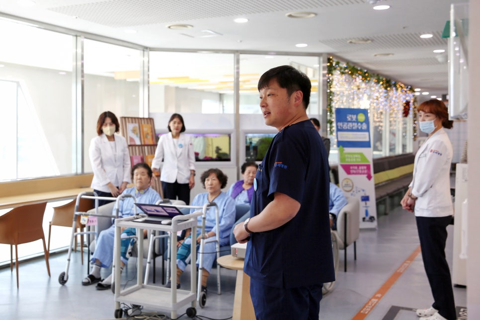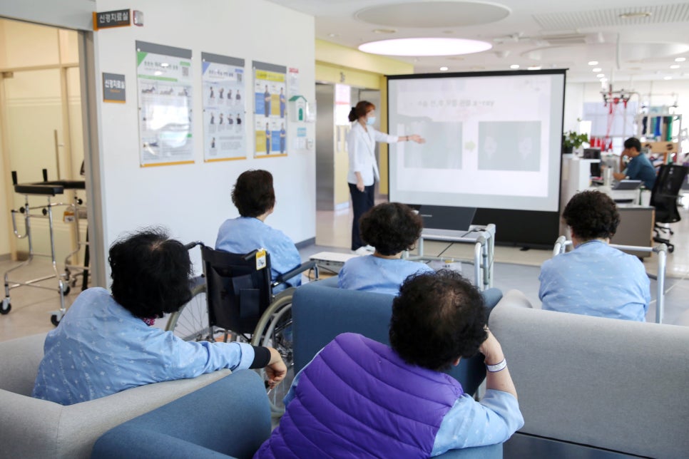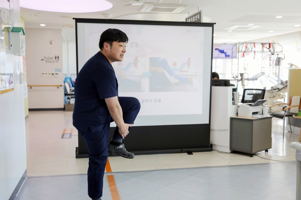 인공관절 수술 후 기능 회복을 위한 다양한 운동법을 직접 보여드리며, 환자분들이 함께 따라하는 시간을 가졌는데요. 개인에 맞는 적절한 강도로 재활운동을 열심히 해주셔야 회복이 빠르며, 일상생활로의 복귀도 앞당겨지게 됩니다.