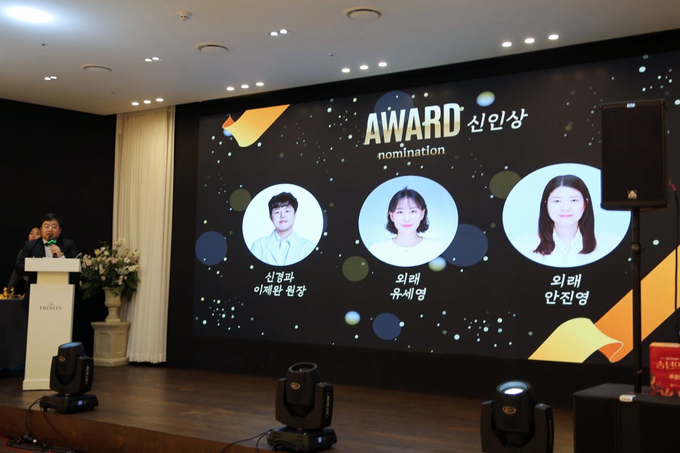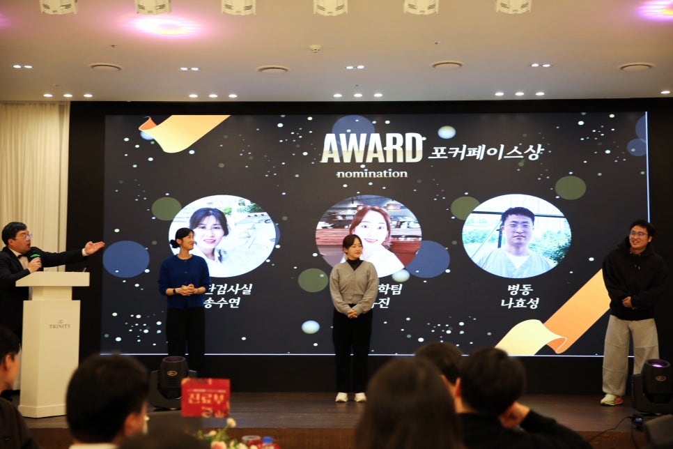 사전 앙케이트를 통해 평촌우리병원 어워즈 후보를 추천받았는데요. 신입상, 포커 페이스상, 베스트 커플상, 착한 직원상 등의 후보들을 무대로 모셔 다양한 게임으로 푸짐한 상품을 전달했는데요.