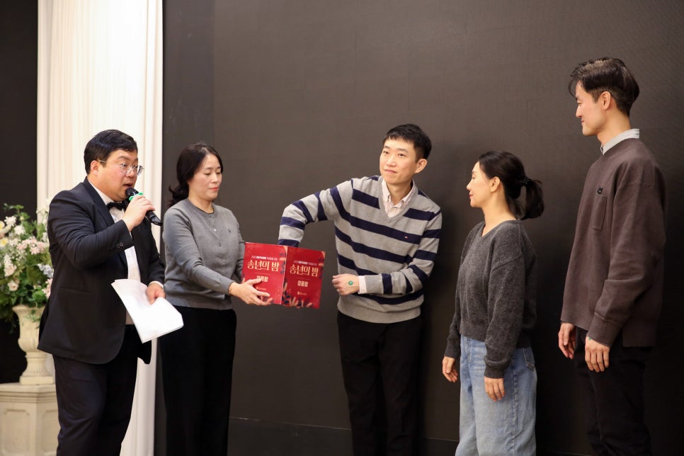 상품으로는 쿠쿠 압력밥솥, 소노 리조트 숙박권, 공기청정기, 에어프라이어, 안마기, HL안양 굿즈, 소노 스카이거너스 굿즈 등 푸짐한 상품들도 준비했습니다. 평촌우리병원 전직원들에게 다니엘 트루스 룸스프레이를 송년의 밤 선물로 전달했습니다.
